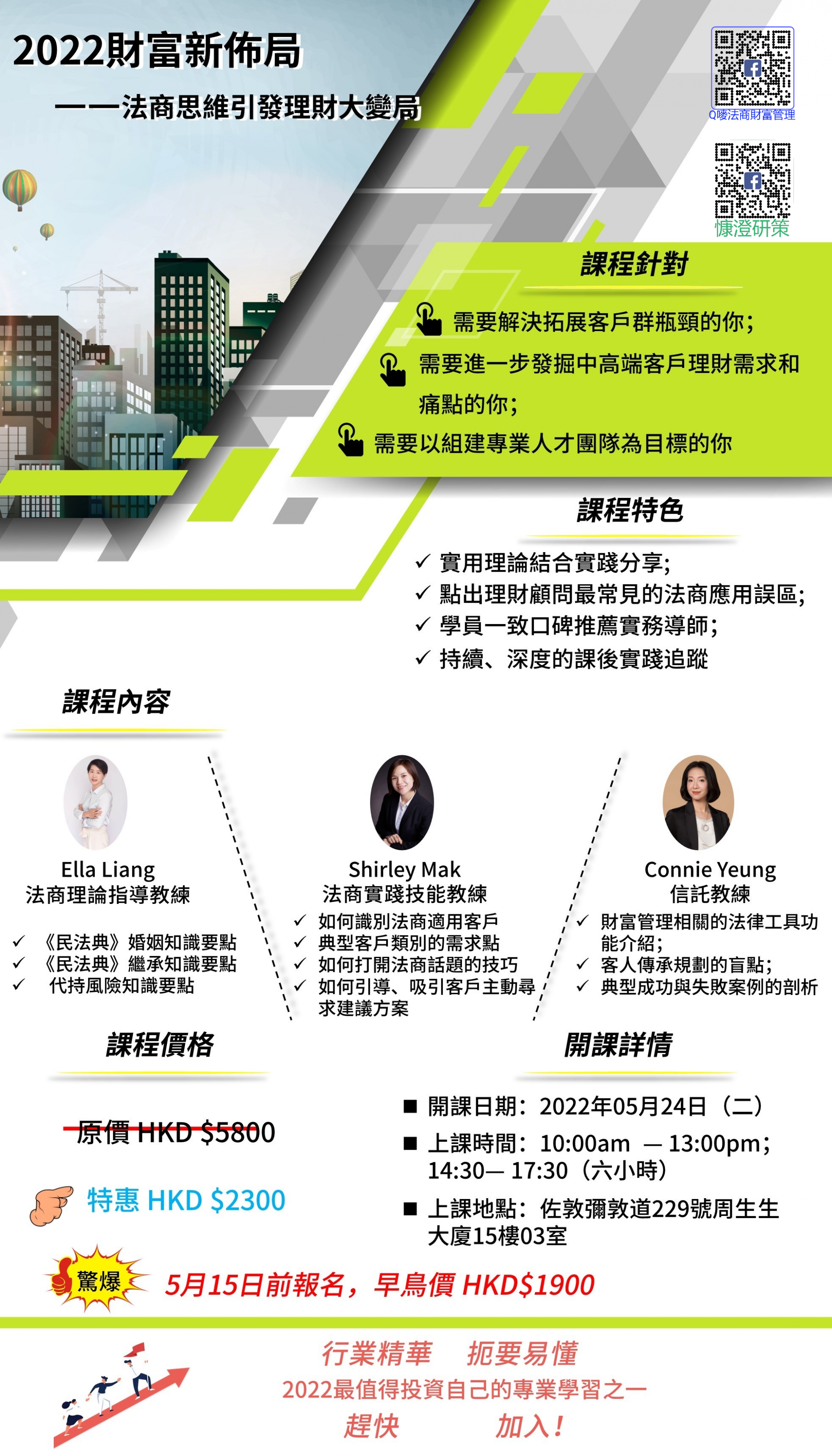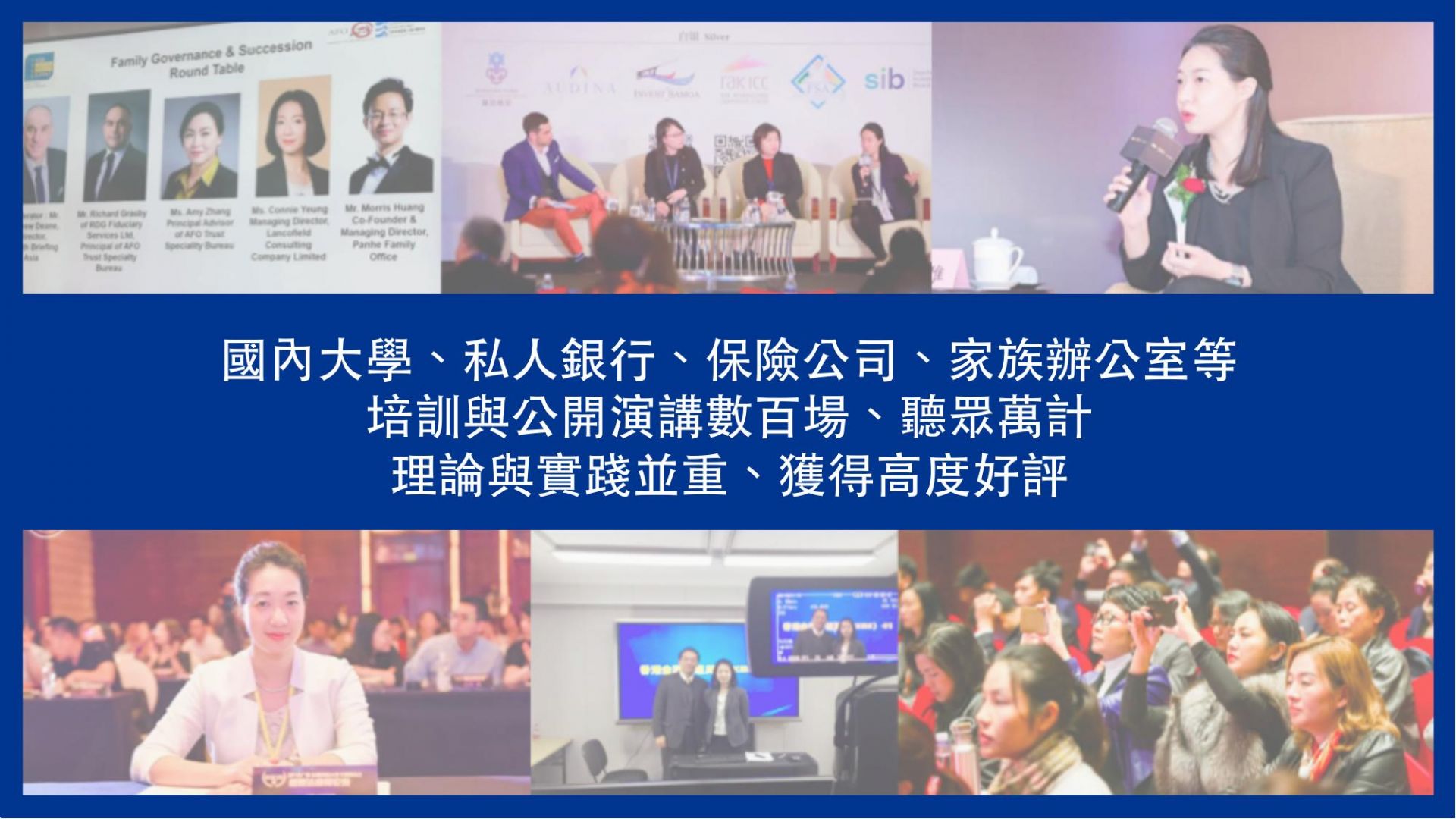 嶺南大學校外進修學院-「大灣區理財通實踐課程」主講講師之一。國際專業教育培訓集團講師,主理江西財經大學認證的「中國高端客戶財富規劃師」。大成商學院CICFP法商講師。課程學員包括香港、內地及澳門地區。